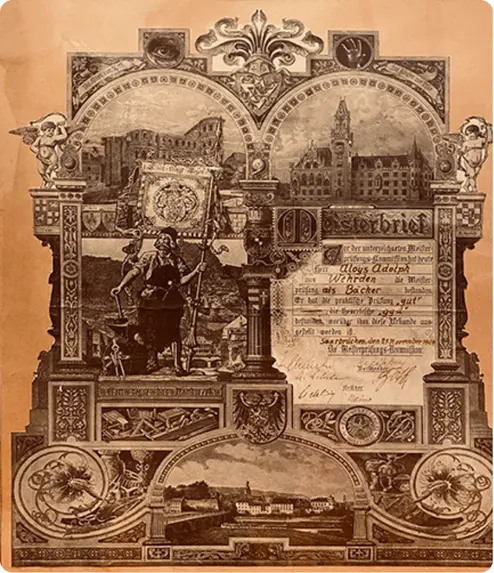 Im Mai 1927 legten Bäckermeister Alois Adolf und seine Frau Katharina den Grundstein für unsere Bäckerei auf dem Wehrdener Berg. Die Konkurrenz war damals groß – zahlreiche Bäckereien prägten bereits die Umgebung. Umso wichtiger war es für Alois, sich von Beginn an mit außergewöhnlicher Qualität und Geschmack zu behaupten.
